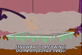 (SNOWBALL II MEOWING) Shame on you two creeps!