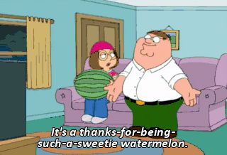 It's a thanks-for-being- such-a-sweetie watermelon. So you'll hang onto that? Yeah, sure. (EXCLAIMS) This is weird. Am I supposed to eat this? (SCREAMS) I hate you! I hate you! Oh, maid.