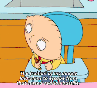 The fruition of my deeply laid plans to escape from that cursed ovarian bastille.