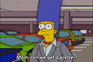 Mom, can we get a pretzel? We've got pretzels at home. Not cinnamon.