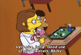Very nice, janie. Good use of pipe cleaners, Becky. Don't open it, Ralph. I'll just give you a C-minus. Yea! - Not finished, Lisa? - I'm finished. I just got to--