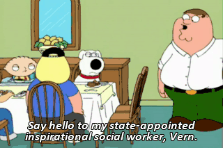 Hey, everyone. Say hello to my state-appointed inspirational social worker, Vern. It's truly a pleasure to meet you all.
