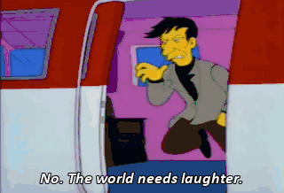 No. The world needs laughter. Are we gonna die, son? Yeah.