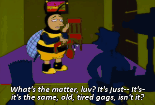 What's the matter, luv? It's just-- It's-it's the same, old, tired gags, isn't it?