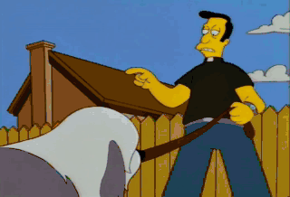 Look at that. Right on Ned's lawn. Now, how could you do such a thing? Good boy. Don't stop now. Bad dog! I condemn you to hell. Better get the old snow shovel back from Homer, huh?