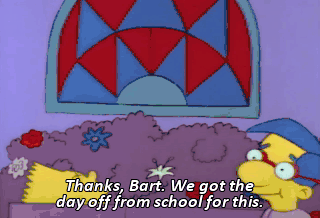 Thanks, Bart. We got the day off from school for this. - Yeah, and I got the day off from work. - Homer !