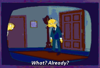 What? Already? Yes. Is it my imagination, or is TV getting worse? Ah, it's about the same. Uh-oh! Look out, Smithers! I love this show.