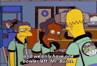 and we only have one bowler left: Mr. Burns. Hmm?