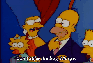 Don't stifle the boy, Marge. - We're supposed to encourage him. - Shush !