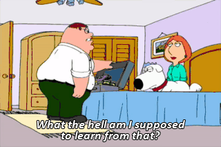 What the hell am I supposed to learn from that? Well, face it, Peter. Your attitude towards women isn't exactly enlightened.