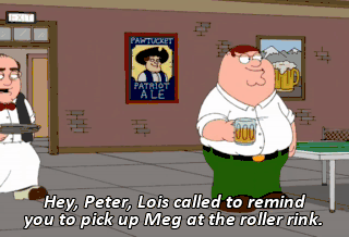 Hey, Peter, Lois called to remind you to pick up Meg at the roller rink.