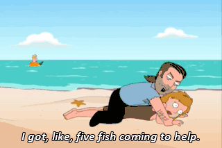 I got, like, five fish coming to help. Here they are! Help! He's hurting me! Well, maybe you shouldn't have led him on.