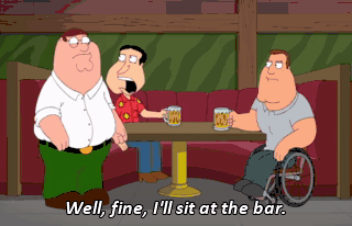 Well, fine, I'll sit at the bar. Not at my bar, you won't. Get out of here. Geez, I can't show my face anywhere.