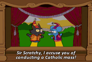 Sir Scratchy, I accuse you of conducting a Catholic mass! Lord Itchy, I accuse you of not signing the Act of Succession. (GRUNTING) (MOANS) If only I had a son to enjoy this with.