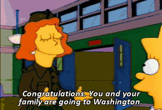 Congratulations. You and your family are going to Washington. Wa-hoo! Who would have guessed... Reading and writing would pay off?