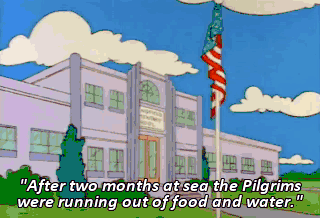 "After two months at sea the Pilgrims were running out of food and water." Did they have yo-yos? No, they did not have yo-yos. "When they landed they were greeted by the Wompanog Indians."