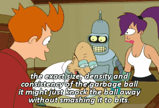 the exact size, density and consistency of the garbage ball it might just knock the ball away without smashing it to bits.