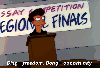 Ding-- freedom. Dong-- opportunity. Ding-- excellent schools. Dong-- quality hospitals."