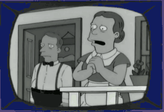 He's a rebel, I tell you. A rebel without a cause. just like that boy in that popular movie we saw. Look what you've done to beautiful display! Yeah, that's the life for me, Marge--