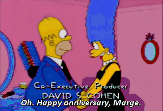 Oh. Happy anniversary, Marge. Hey, look what was in here! A program from that guy's funeral. You mean Frank Grimes? Yeah, him. Whatever happened to that guy?