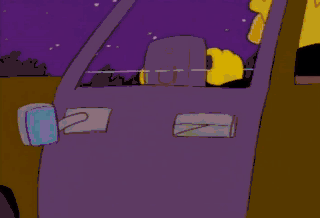 D'oh! I gotta find another way to wreck Moe's car. Oh, honey, this whole evening was so wonderful.