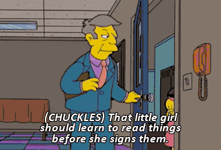 (CHUCKLES) That little girl should learn to read things before she signs them.
