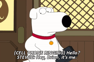 (CELL PHONE RINGING) Hello? STEWIE: Hey, Brian, it's me.