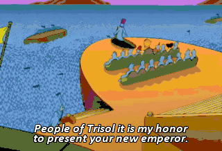 People of Trisol it is my honor to present your new emperor. What up? Stick to the oath. Right.