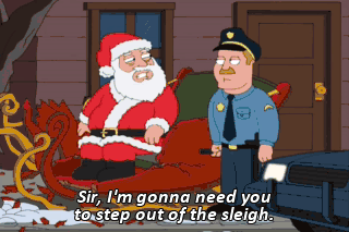 Sir, I'm gonna need you to step out of the sleigh. All right, Stewie. We're gonna get you nice and pumped up. Now, you see that barbell over there? Go ahead and try and lift that. (GRUNTING) Uh-oh, spadoodios.