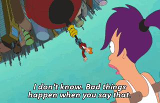 I don't know. Bad things happen when you say that. I got her! Ow! Oops!