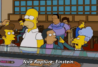 Nice Rapture, Einstein. (PEOPLE JEERING)