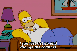 I can just get up and change the channel. Wait a minute. I'll do what Flanders does. C) merciful God... who has blessed mankind with two kinds of clam chowder...