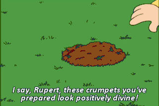 I say, Rupert, these crumpets you've prepared look positively divine!
