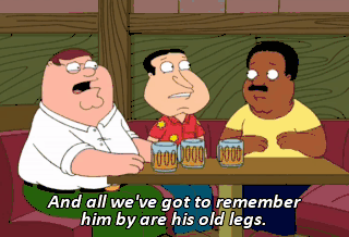 And all we've got to remember him by are his old legs. (GROWLING) Okay, okay.