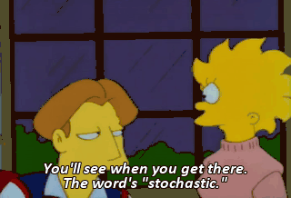 You'll see when you get there. The word's "stochastic." "Pertaining to a process involving a randomly determined sequence of observations."