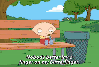 Nobody better lay a finger on my Butterfinger.