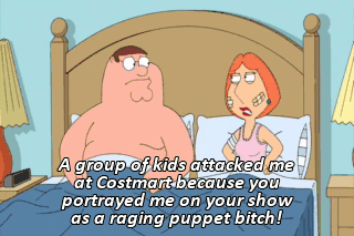A group of kids attacked me at Costmart because you portrayed me on your show as a raging puppet bitch!