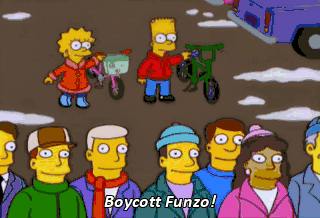 Boycott Funzo! He's a toy-killing machine! That shy little imp? I have a flower for 'ou. Aw. Oh, man. I gotta get me one of those. Hey, I'm not waiting till the store opens.