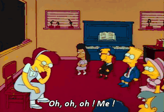 - Oh, oh, oh ! Me ! - Bart ? What about a robot with a human brain ? I don't know ! All these questions ! Is a little blind faith too much to ask ?