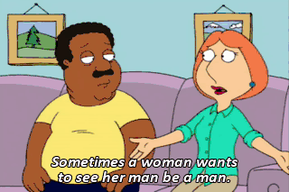 Sometimes a woman wants to see her man be a man. You got to push back a little! You got to get a little rough! - Oh, God! Peter, hit me! - Yeah!