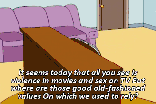 It seems today that all you see Is violence in movies and sex on TV But where are those good old-fashioned values On which we used to rely?