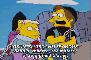 (GRUNTS) (GROANS) SEYMOUR: Behold, children, the majesty of Springfield Glacier. Crane your necks skyward to behold its icy glory. (FROG CROAKING)