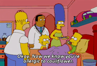 Okay. Now we know you're allergic to cauliflower.