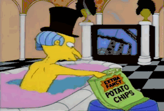 Hmm. Will 5:00 never come? Careful, Smithers! That sponge has corners, you know. I'll go find a spherical one. Help, Smithers. I'm sinking. I'm sinking.