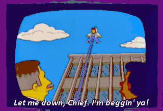 Let me down, Chief. I'm beggin' ya! I'm a human being. Let me have my dignity back! Ow! - Now he's stupid and whiny. - That does it! There's only one thing I can do.