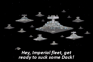 Hey, Imperial fleet, get ready to suck some Dack! I think we're doomed. Nah. Unless they've got any big, giant robot camels, I think we're okay.