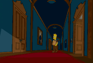 (GASPS) (MUTTERING) Oh, I get it. You can't tip me, because your hands are tied. My dad pulls that scam all the time. Don't move, teenage Bart.