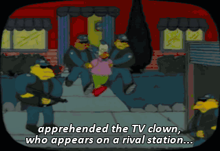 apprehended the TV clown, who appears on a rival station...