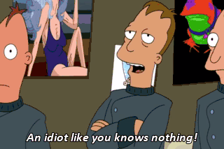 - An idiot like you knows nothing! - Ah! What matters is, it violates the license agreement, and that means I've got him right by his little... Ding-dong. I'm saying "ding-dong" 'cause you don't have a doorbell.