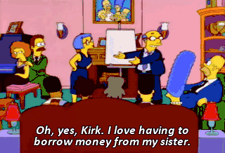Oh, yes, Kirk. I love having to borrow money from my sister. I love having to steal clothes from the church donation box. Oh, sweet jesus! Lisa, why don't you come sing for uS?